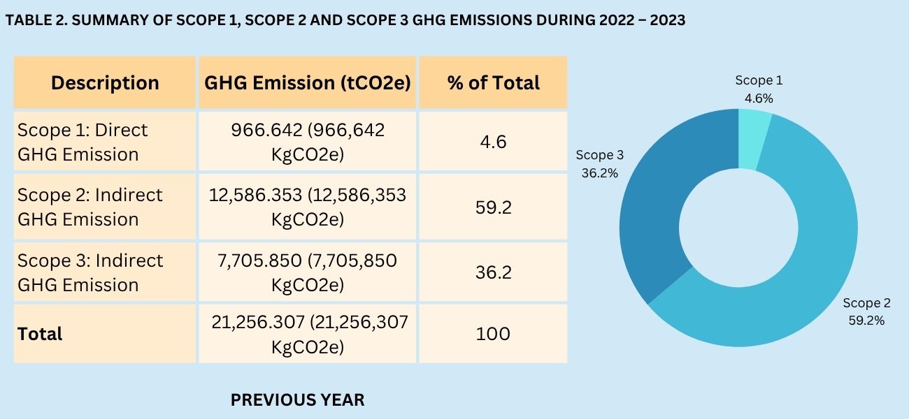 - The GHG emissions from all sources, stationary and mobile, during the year 2022 – 2023 are lower than those during 2021 – 2022, by 22%.